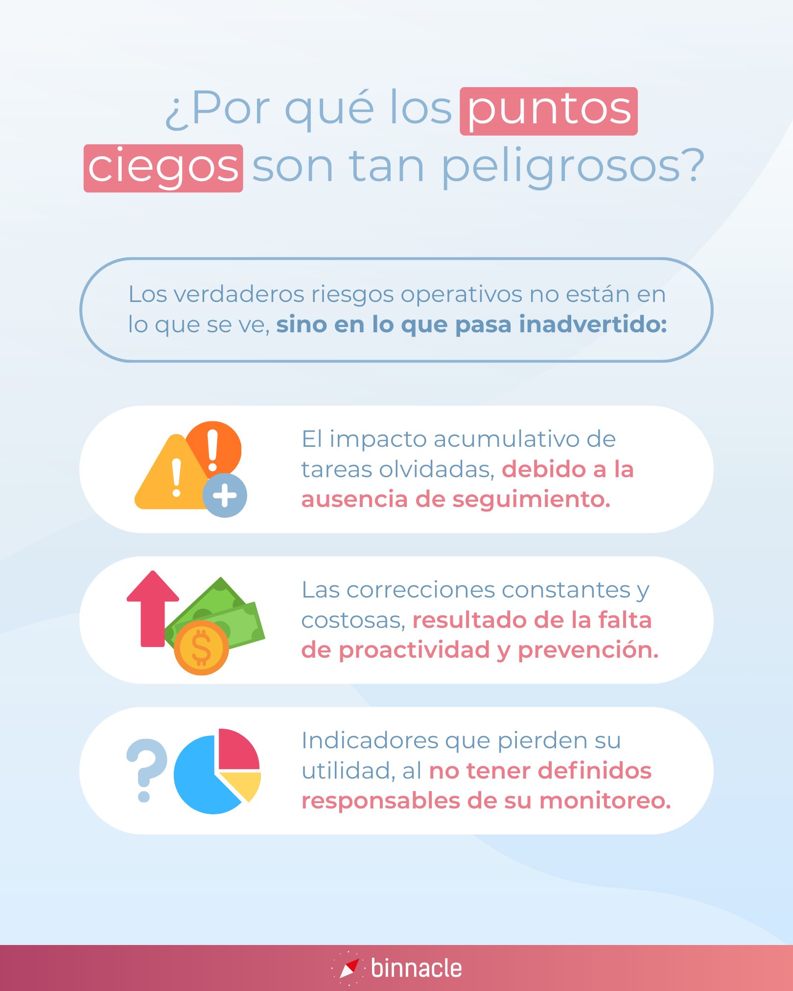 Los puntos ciegos no se eliminan con suerte, se eliminan con método. Contar con visibilidad en tiempo real, responsables claros y un seguimiento constante es lo que marca la diferencia entre reaccionar tarde o anticiparse.