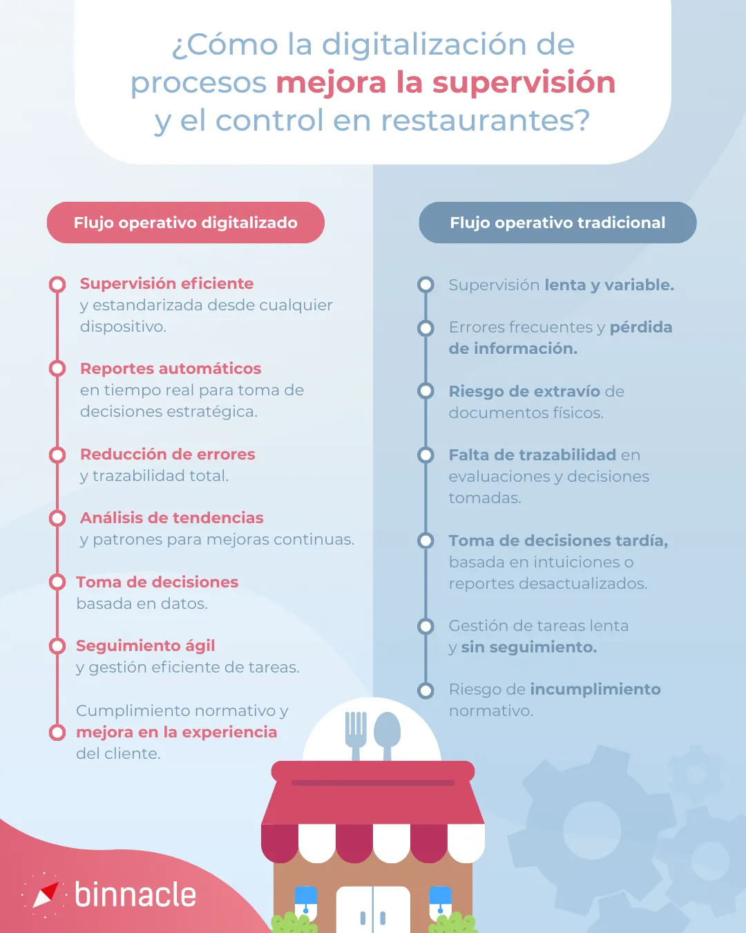 ¿Cómo la digitalización de procesos mejora la supervisión y el control en restaurantes?
